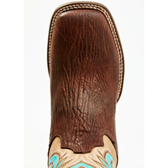 - 11″ leather shaft with teal blue western embroidery design
